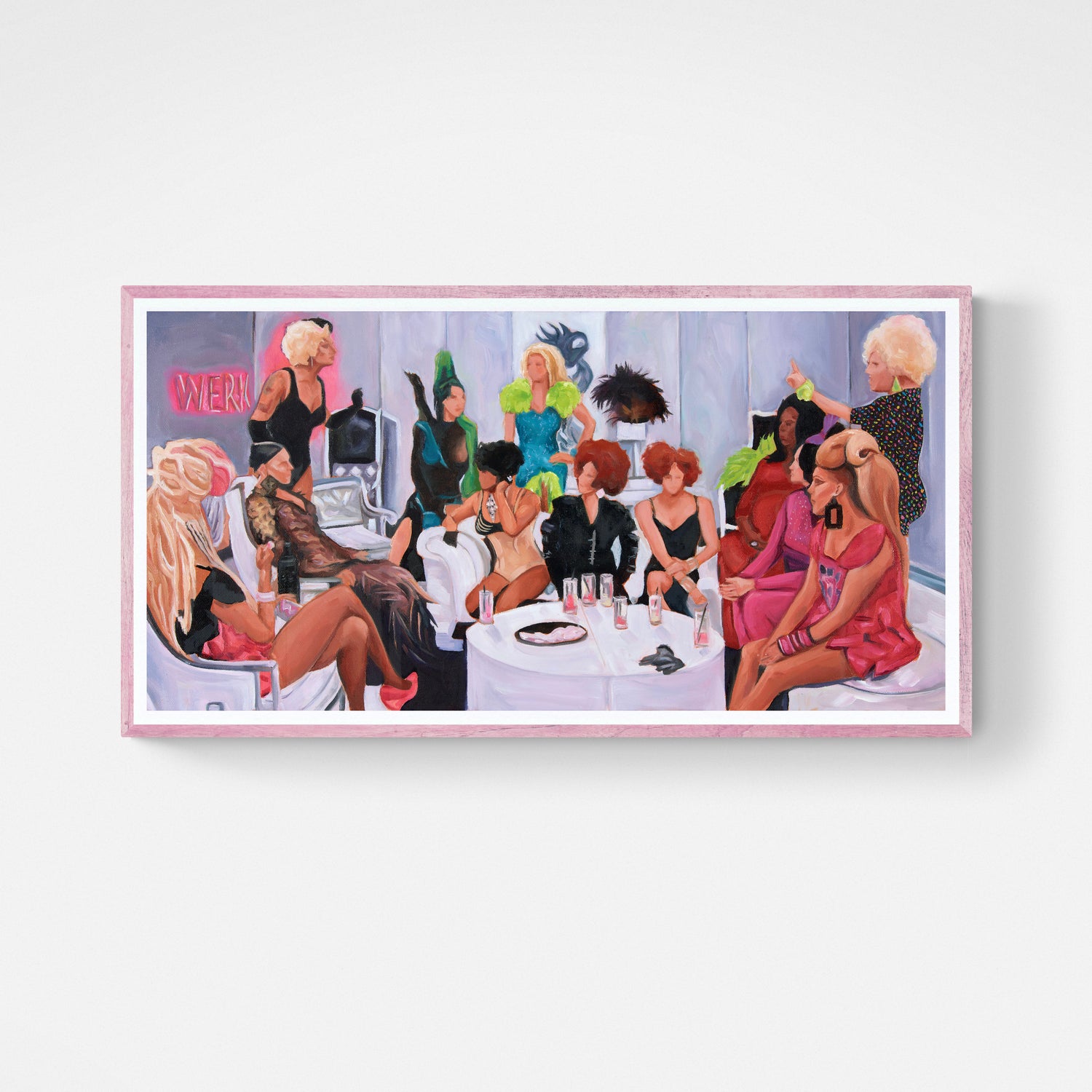 Hand painted in oils and reproduced as a museum-grade giclée print, this piece fuses drag chaos with classical painting tradition.