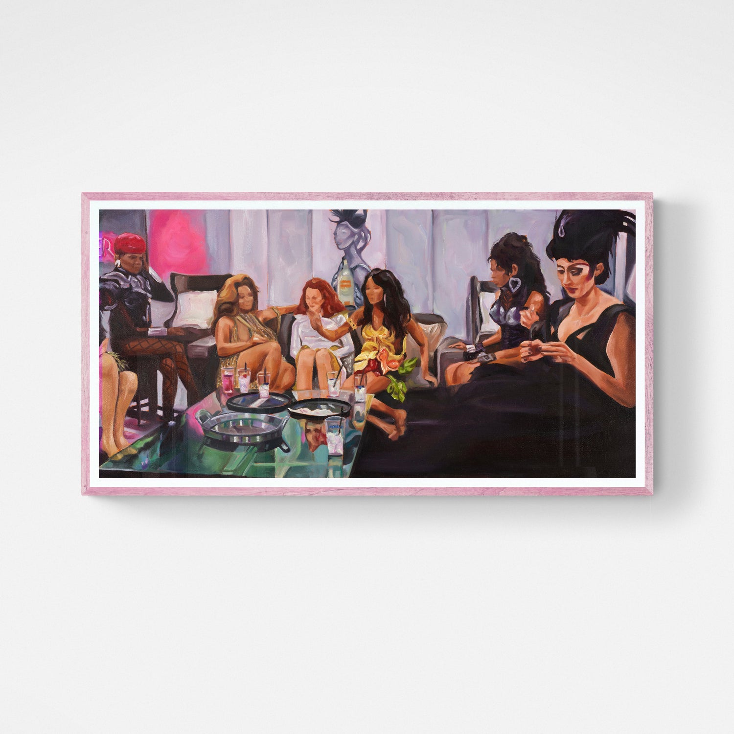 Hand painted in oils and reproduced as a limited edition museum-grade giclée print, this piece fuses drag chaos with classical painting tradition.