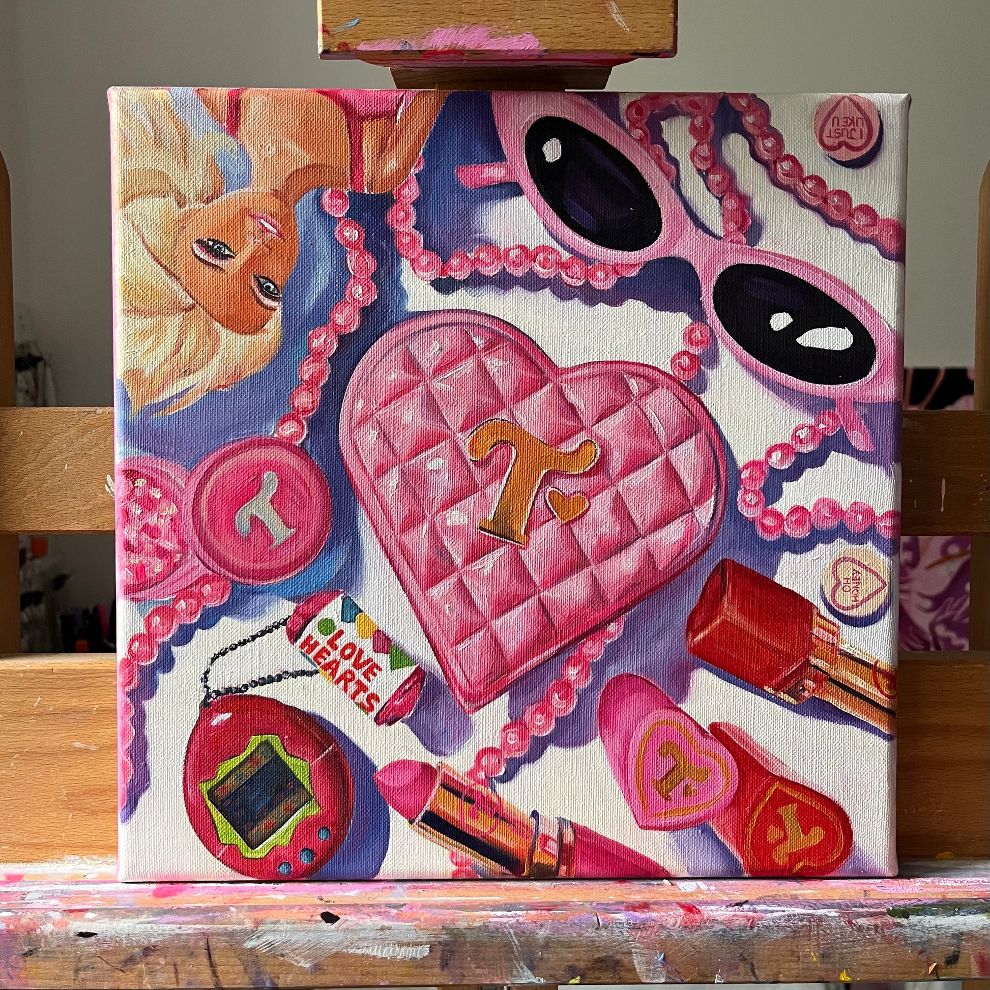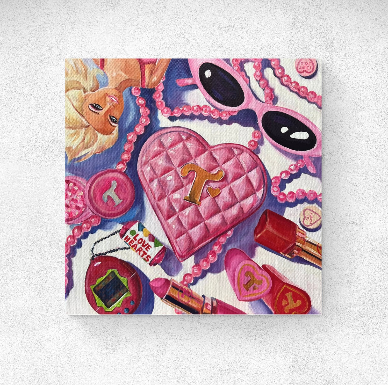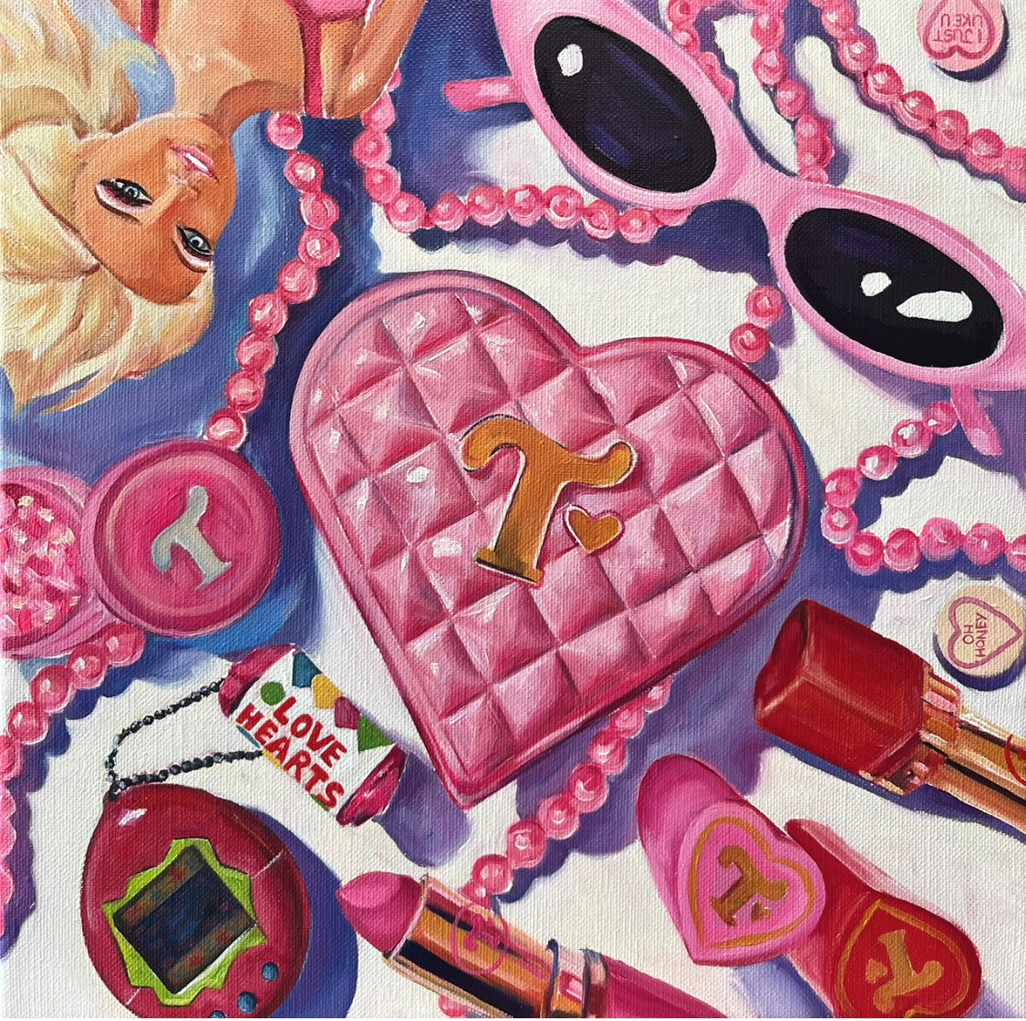 This painting is a still life homage to Trixie Mattel, with a touch of Juno Birch and a healthy dose of 90s nostalgia.
